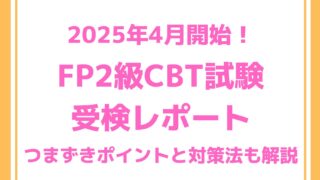 FP2級・AFP 【CBT受検体験記】FP2級学科試験編 つまずいたポイントと対策法も! 今回のFP勉強ラボでは、2025年4月1日から開始されたFP2級のCBT試験の受検レポートを紹介します。筆記試験との違いを体感したので詳しく紹介しています。対策法も考えました。FP2級のCBT試験を受検予定の方はぜひ読んでみてください! 2025.04.01 2025.04.05 FP2級・AFPFP試験対策通信講座