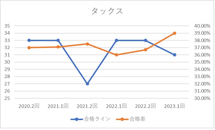 不動産とタックスは比較的、合格ラインの点数が安定しています。