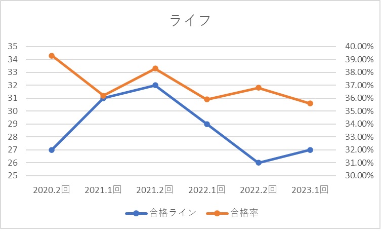 金融とライフ以外の課目の合格ラインが前回よりも下がっていました(太字部分)。