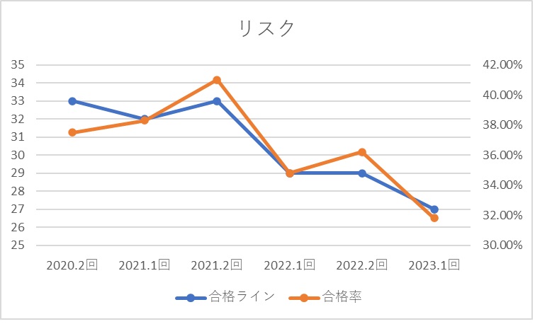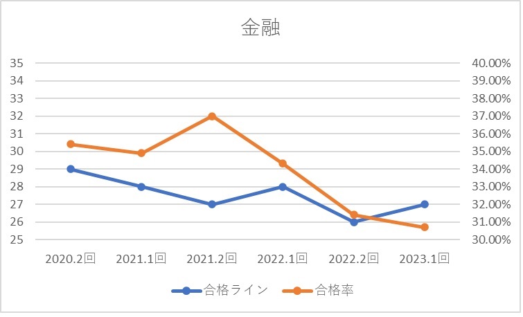 金融とリスクと保険の合格率が下がってきているのが顕著です。
