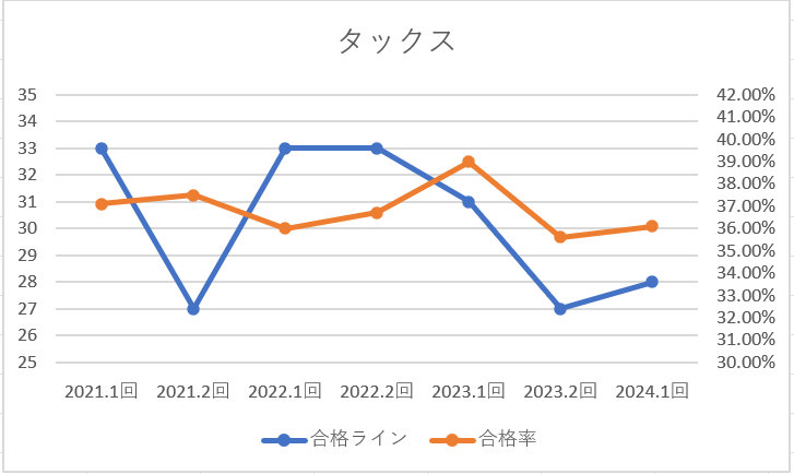 - タックスは合格ラインは変動があるが、合格率は安定傾向。
