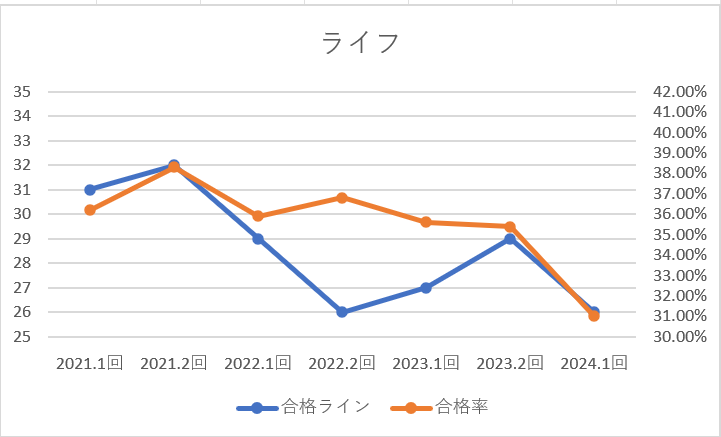 - ライフは今回の試験が合格ライン、合格率ともに低く難しかった模様。