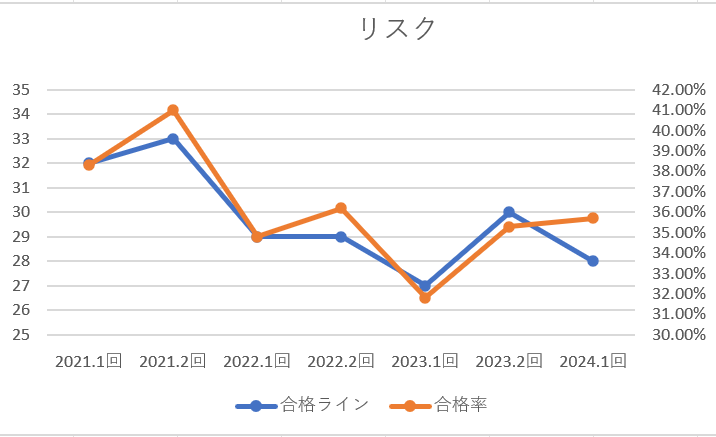 - リスクは合格率が戻りつつあるが、以前よりは低い。