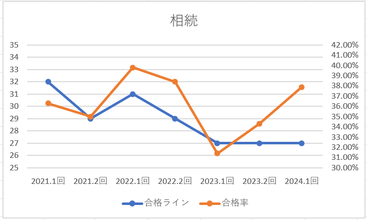 - 相続は合格ラインは低めのままだが、合格率は上がりつつある。