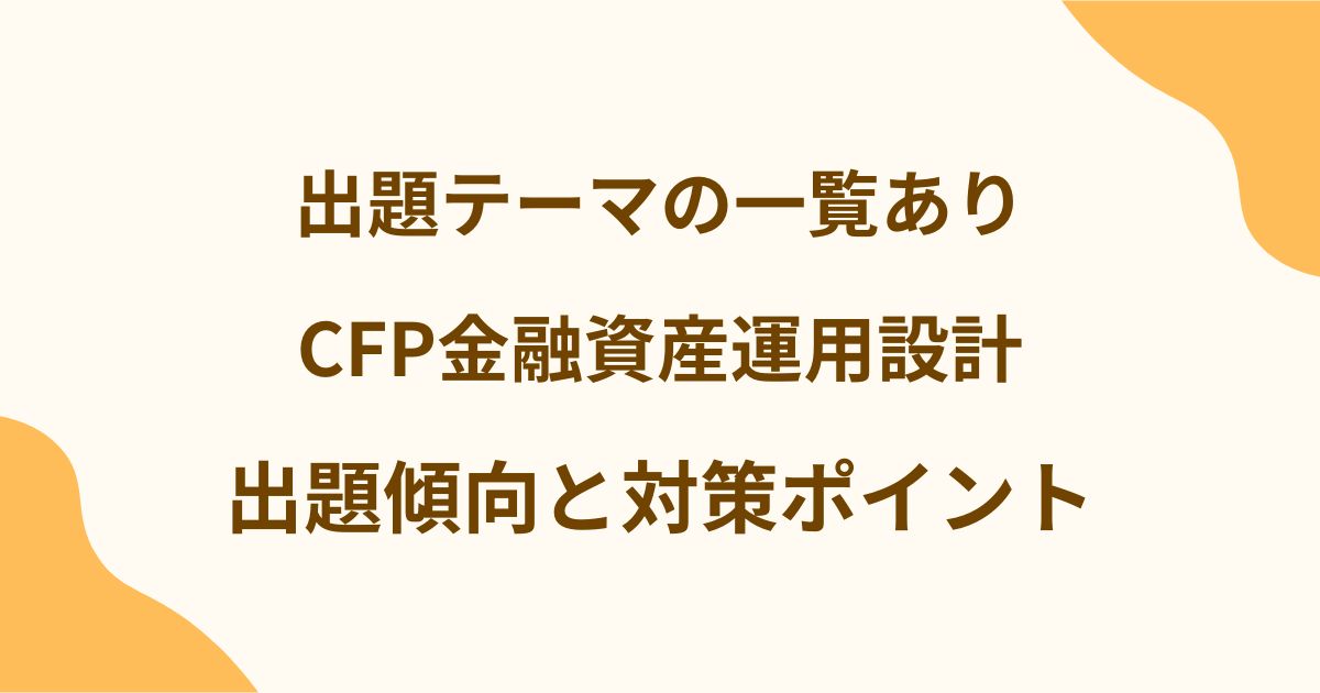 CFP試験の金融資産運用設計は、FP2級からぐっと難易度が上がり、出題範囲も広くて、どこから手をつければいいか迷いやすい課目です。