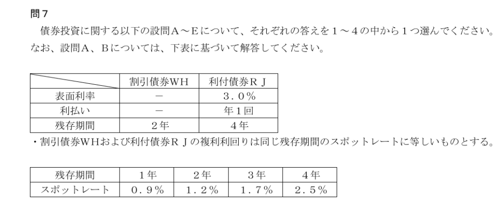 | 大問7(5~6問) | 債券投資 | 計算問題が3問 |