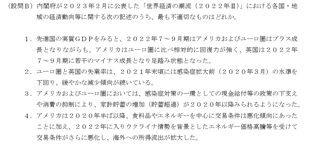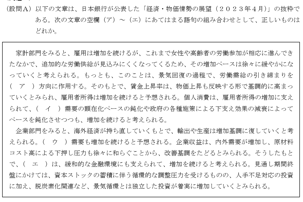 出題資料に「経済・物価情勢の展望」が使われていない問題でも、世界の経済動向、金融市場について問われることはあるので、読んでおくと流れがつかめると思います。