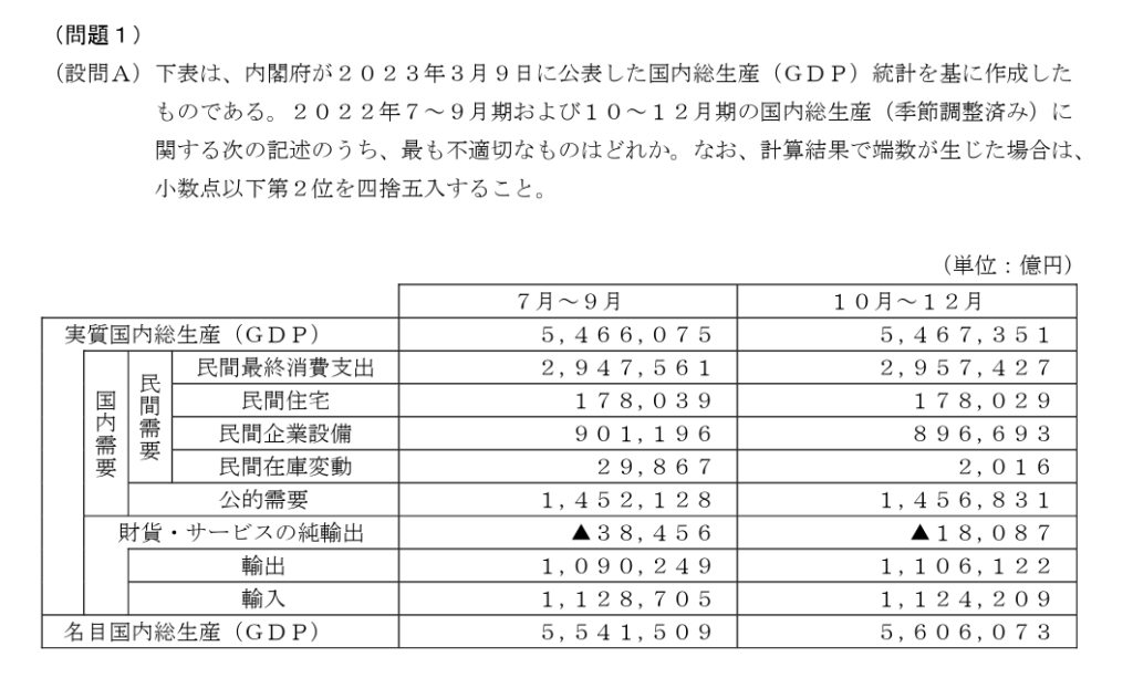- 内閣府GDPは、第1回試験は、前年の11月の資料、第2回試験は、当年の6月の資料が使われていました。