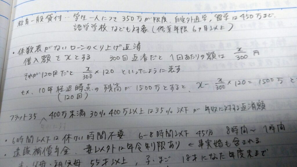 覚えられなかった数値や単語のほかに、問題の解き方もまとめノートに書きました。