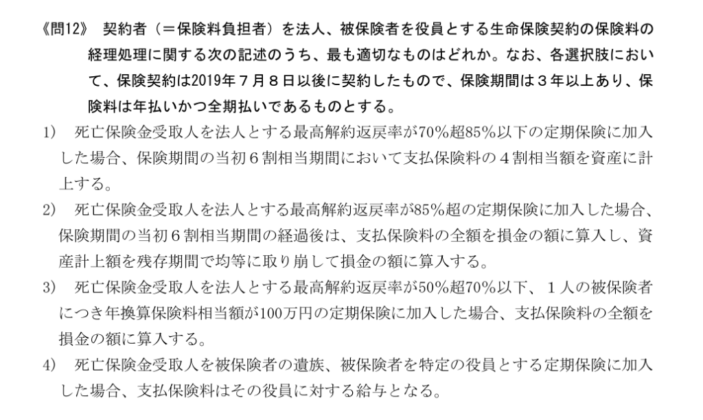 どちらも法人の生命保険に係る経理処理についての問題です。