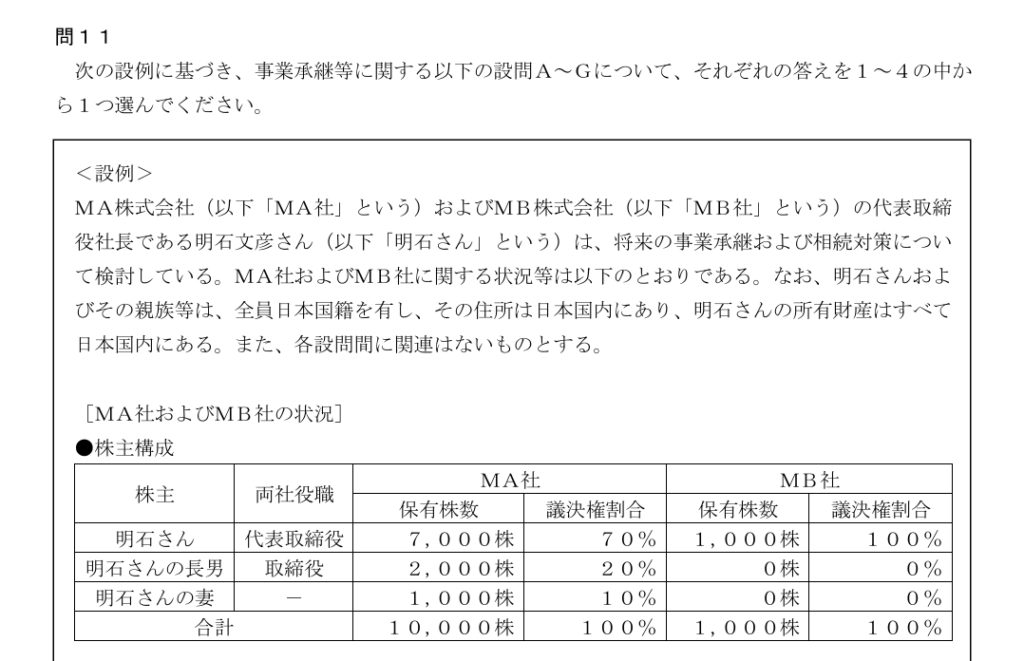 2023年第2回は事業承継についての問題が2問出題されて、全11問になっています。、