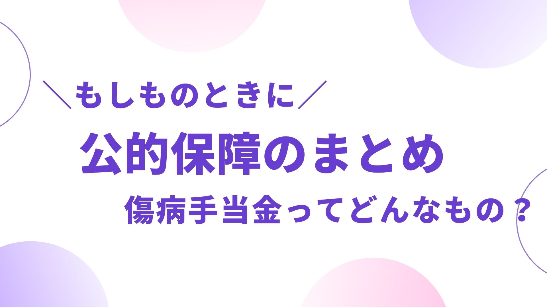 今回は、もしものときの公的保障についてまとめてみました。