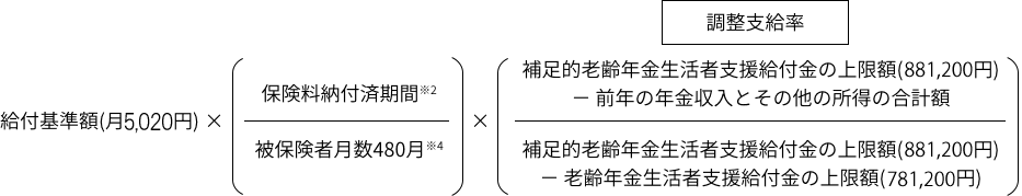 補足的老齢年金生活者支援給付金の計算方法は次のようになります。