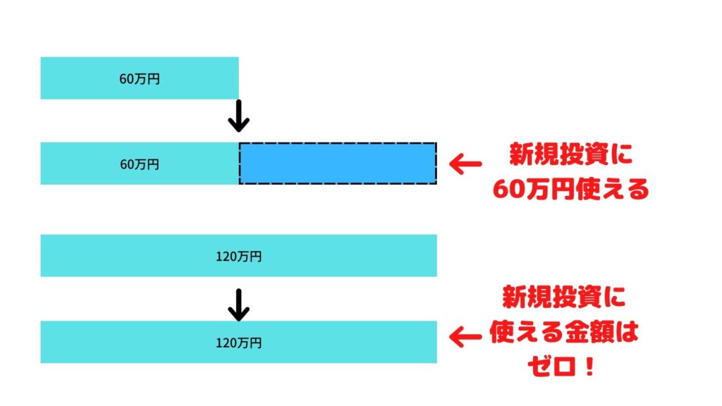 122万円を超えると、新規の投資ができなくなるので気を付けましょう!