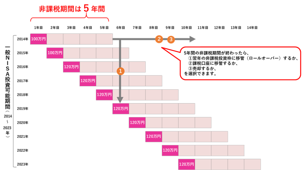 NISAは5年の非課税期間が終了したあとに、その運用資産を残っている非課税投資枠に移すことができます。