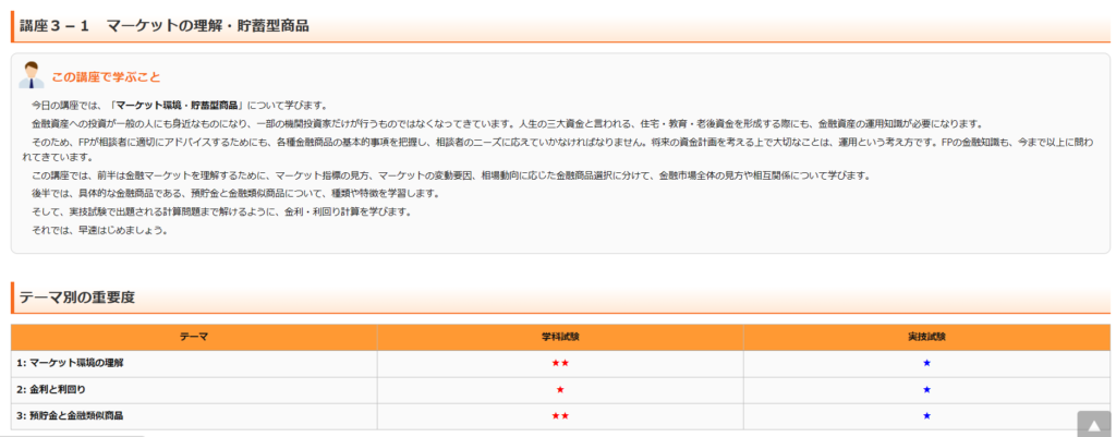 上記の画像のように、テキストの初めに講座で学ぶことと、試験でのテーマ重要度がまとめられています。