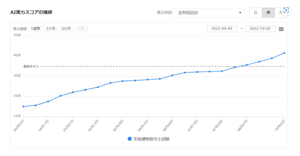 AI実力スコアは、今試験を受けた場合どれくらい得点できるかがわかる機能です。